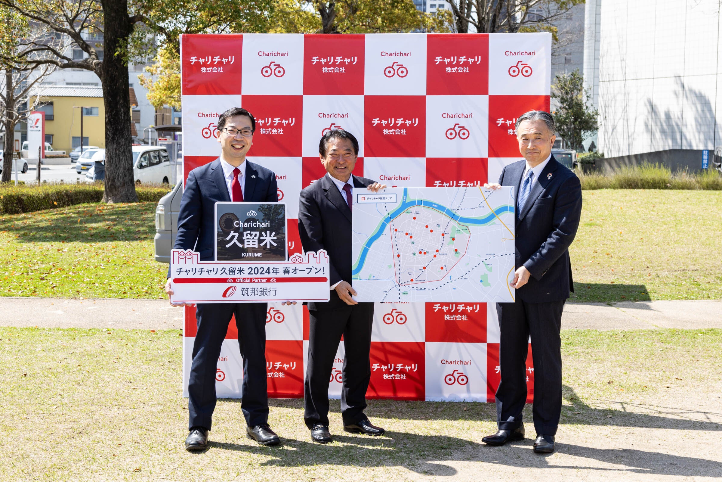チャリチャリは、今後も久留米市とオフィシャルパートナーである筑邦銀行と連携し、地元企業や地域のみなさまのご協力をいただきながら、地域に根ざした交通モードづくりに貢献していきたいと考えております。