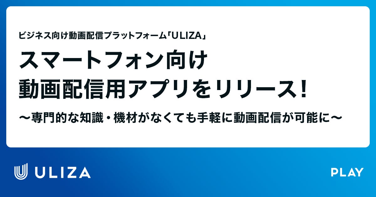 動画配信プラットフォーム「ULIZA」を提供している株式会社PLAY(本社:東京都渋谷区、代表取締役社長:黒田和道)は、「ULIZA」でスマートフォンでの動画配信を可能にする「iOSアプリ」の提供を開始したことをお知らせします。(※iOS 16以降のバージョンで対応)