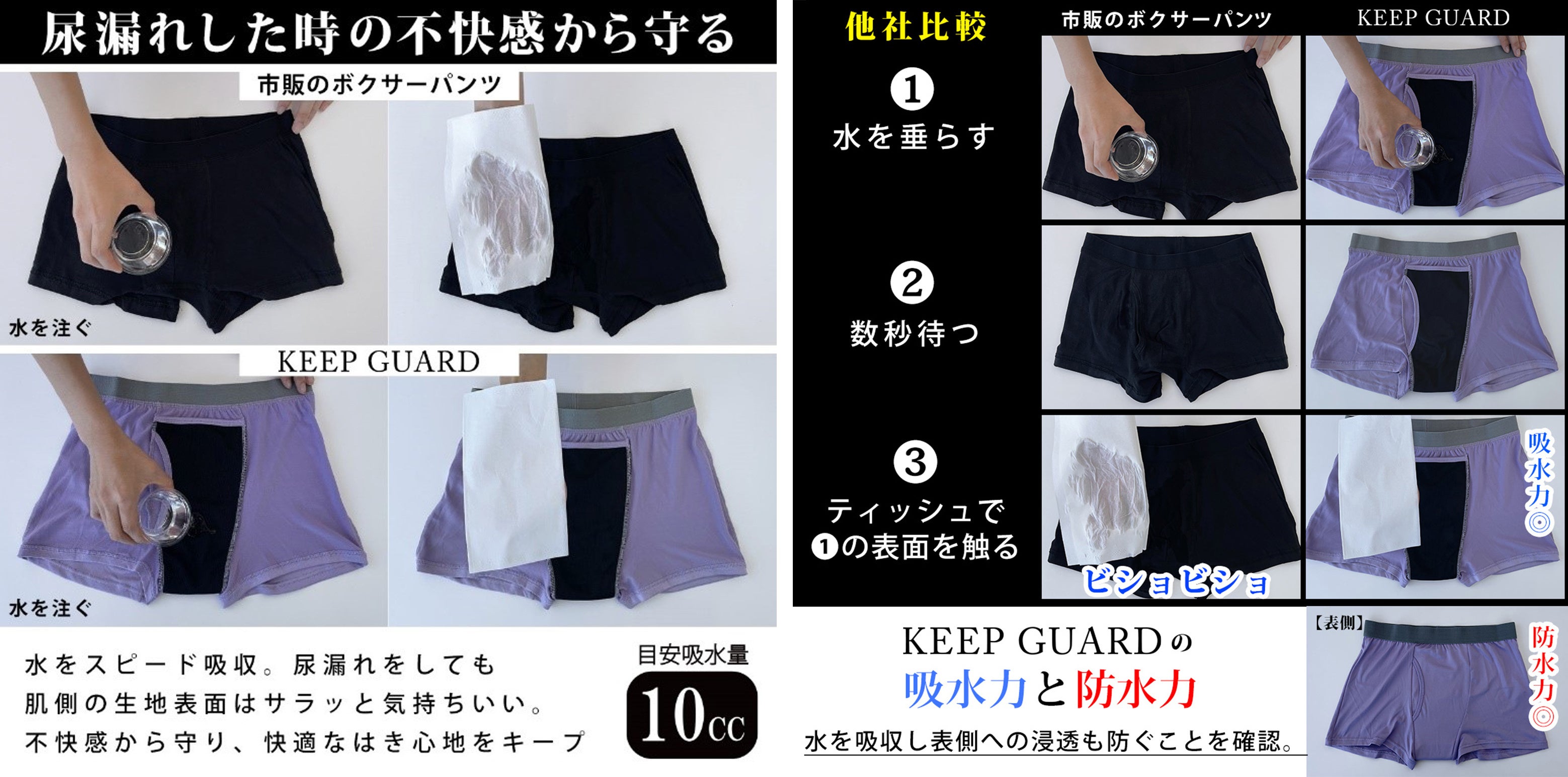 創業70年の老舗アパレルメーカー・クロスプラス株式会社(本社:愛知県名古屋市、代表取締役社長:山本 大寛)は、男性のちょい漏れの悩みを解決する、尿漏れ対策パンツ「KEEP GUARD(キープガード)」を2022年11月よりオンライン(Amazon/楽天/自社ECサイト「クロスマルシェ」)及び全国のドラッグストア・量販店等で販売開始いたしました。