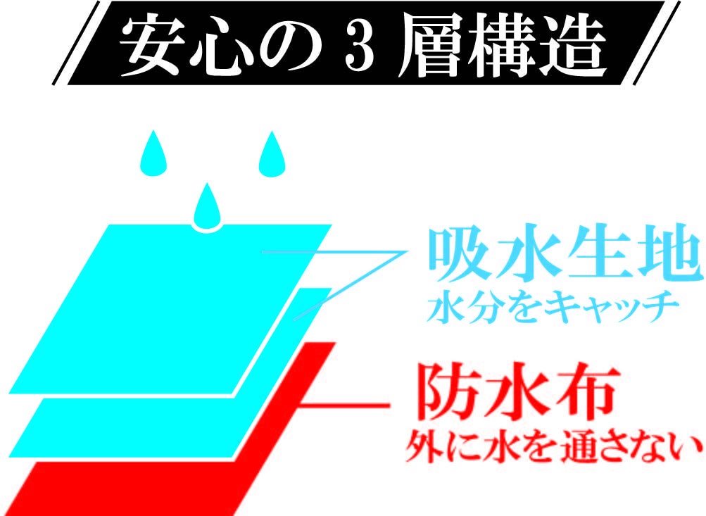 POINT①:安心構造でモレからガード!3層構造で水分をキャッチして、外水を通さない!
