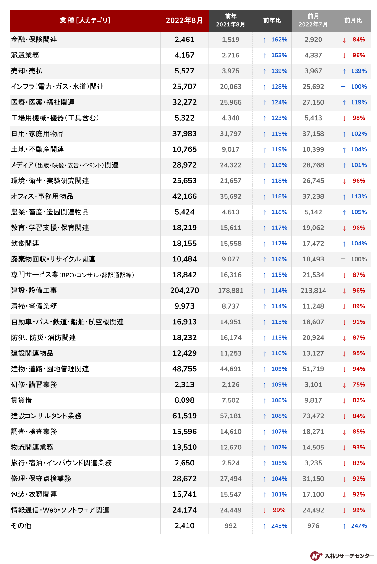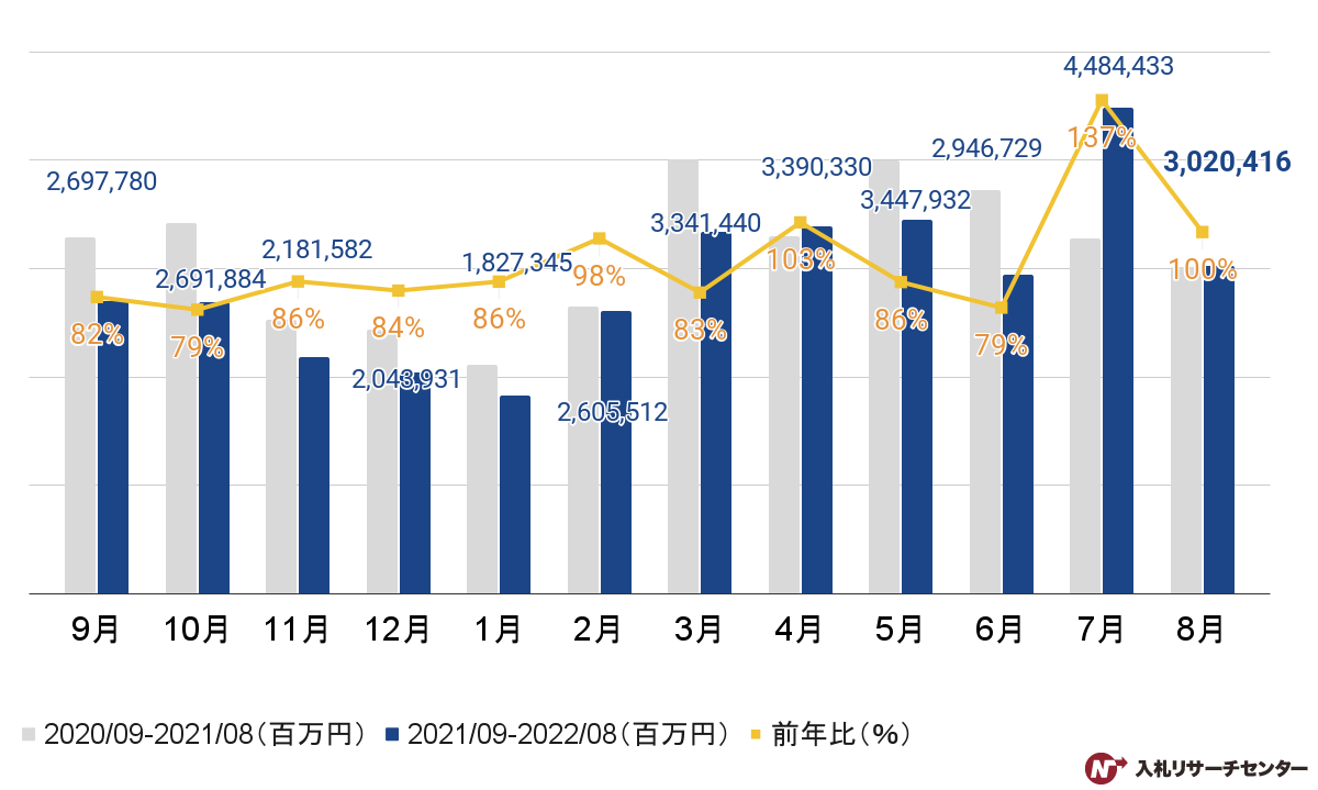 調査名:入札リサーチセンターマンスリーレポート(2022年8月度)