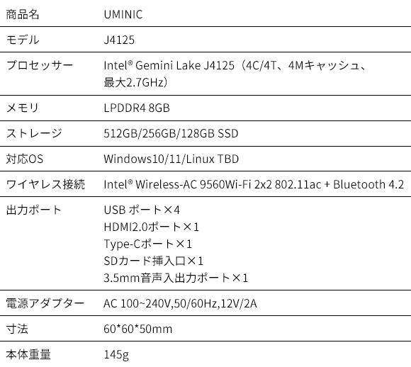 手のひらに収まる超小型ミニPC「UMINIC」【SSD最大512GB・4K/60Hz対応・Windows10搭載】