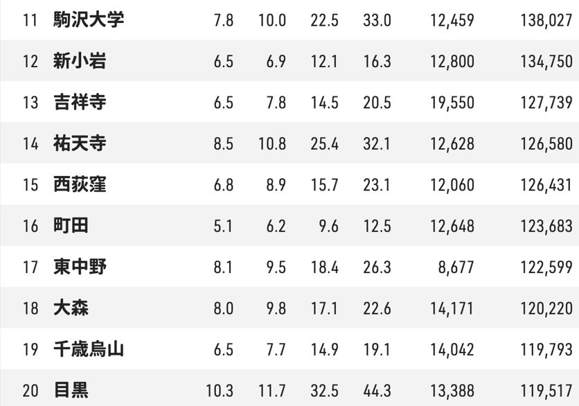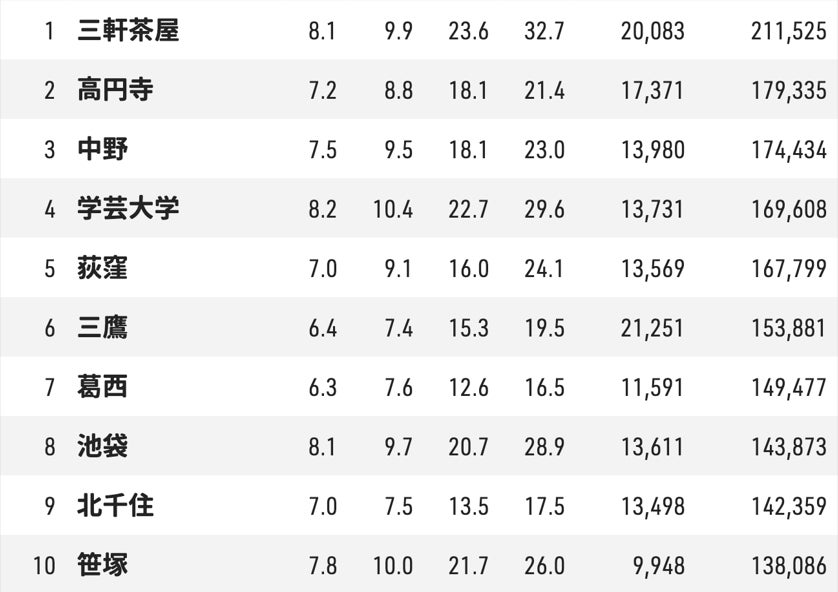 第1位:三軒茶屋