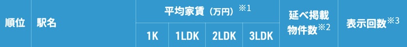 ※3 2023年1月1日~2023年6月30日で、ニフティ不動産のWEBサイトとアプリで賃貸物件検索の際に閲覧された物件が存在する駅の表示数を元に集計