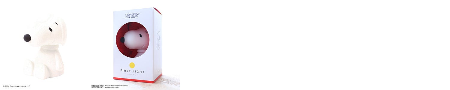 今春に発売となった『First Light Snoopy』も、Mr Mariaの洗練されたシンプルかつスタイリッシュなデザインで、Snoopyのもつ魅力を最大限に表現。全体をマットなシリコーン素材にすることで、クールでありながら柔らかさや温かみをもたらし、どんな空間に置いてみてもなじみがよく、お子さまから大人まで幅広く愛されています。