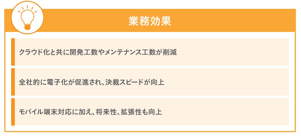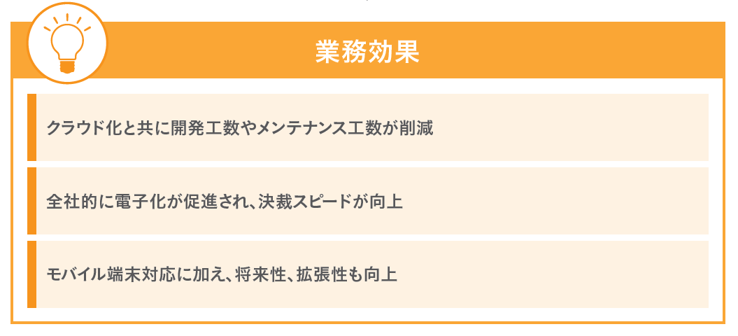また、紙の帳票の電子化は、ブラックボックスとなっていた申請業務の見える化にも貢献しており、承認の状況が可視化されたことにより、決裁スピードの向上や承認漏れの削減も推進されています。