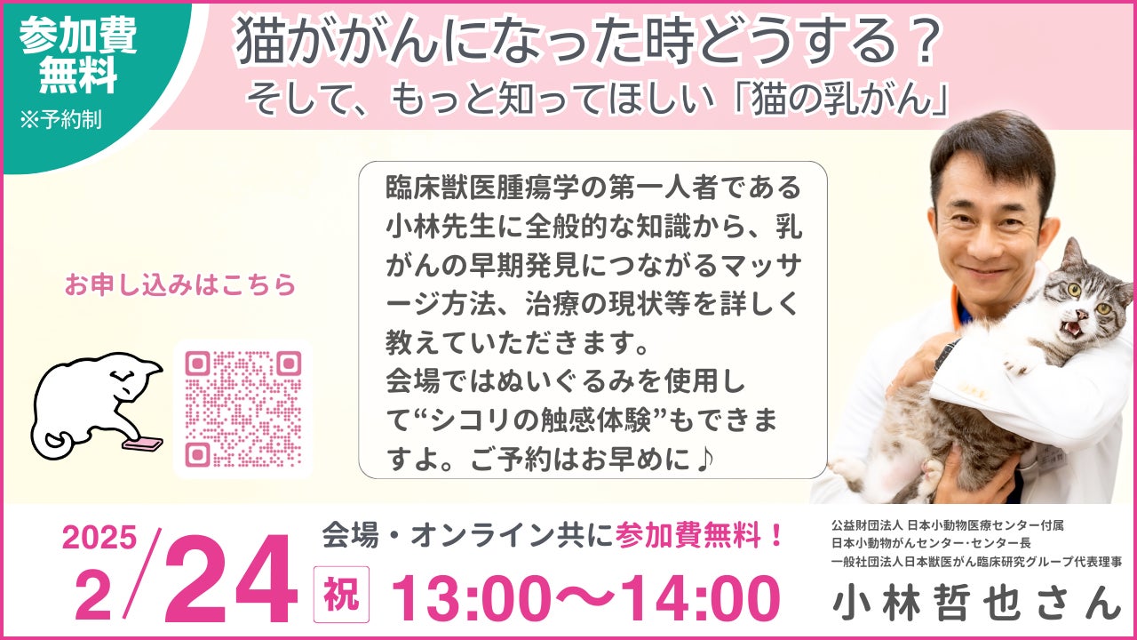 猫の乳がんに関する正しい知識の普及を目的として、2019年に動物のがん専門獣医師である小林哲也先生(日本小動物医療センター付属日本小動物がんセンターセンター長、米国獣医内科専門医[腫瘍学])が代表を務めるJVCOG(日本獣医がん臨床研究グループ)によって開始されました。