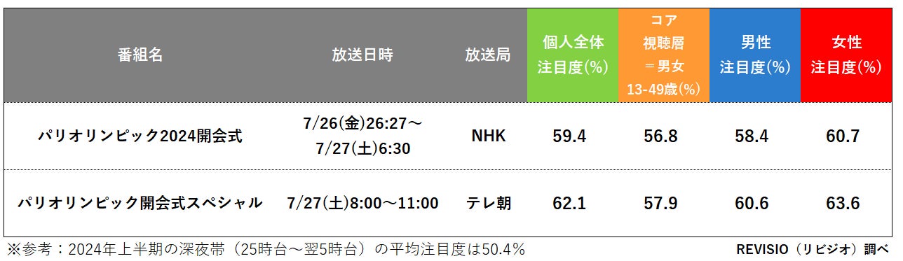 *注目度とは「テレビの前にいる人がどのぐらいテレビ番組を注視していたか」を測るREVISIOの独自指標で、「注目度が高い」とは「テレビの前の視聴者が番組にくぎづけになった」ということを示しています。