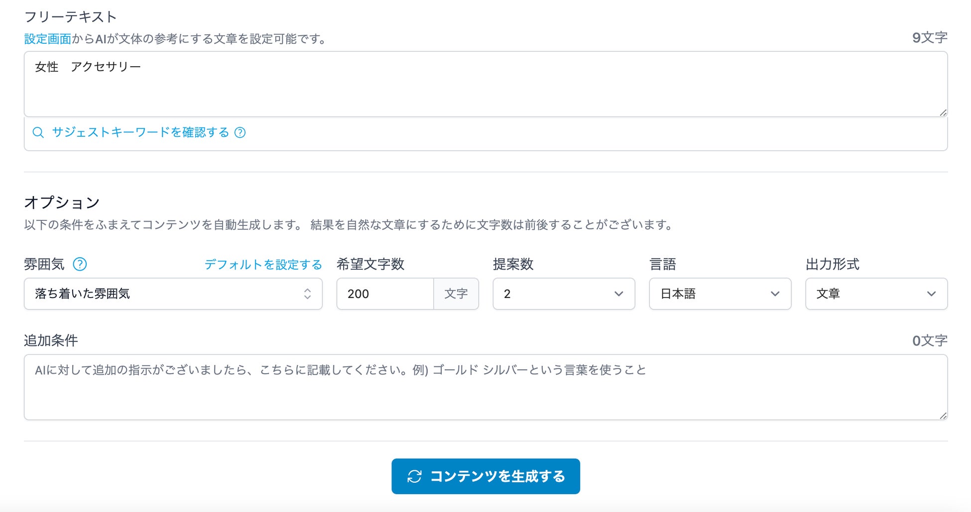 他にもSEOに強い文章を生成するための以下の機能を有しております。