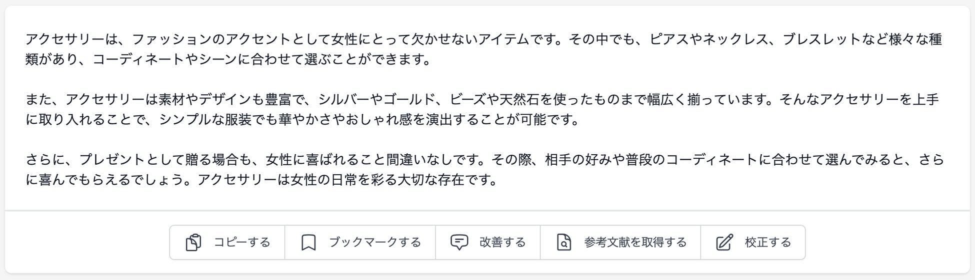 生成されたコンテンツの[参考文献を取得する]ボタンをクリックいただけましたら幸いです。