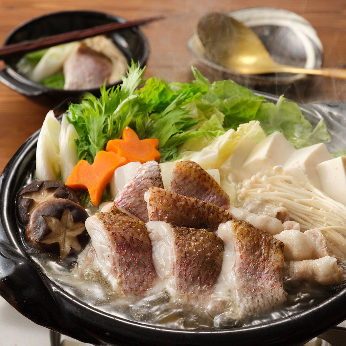 国産のどぐろだしの濃厚な旨味が凝縮された鍋つゆです。上品な風味とコクのあるだしが具材の味をさらに引き立てます。豚バラ肉や白身魚のほかに、お好みでつみれをいれても◎