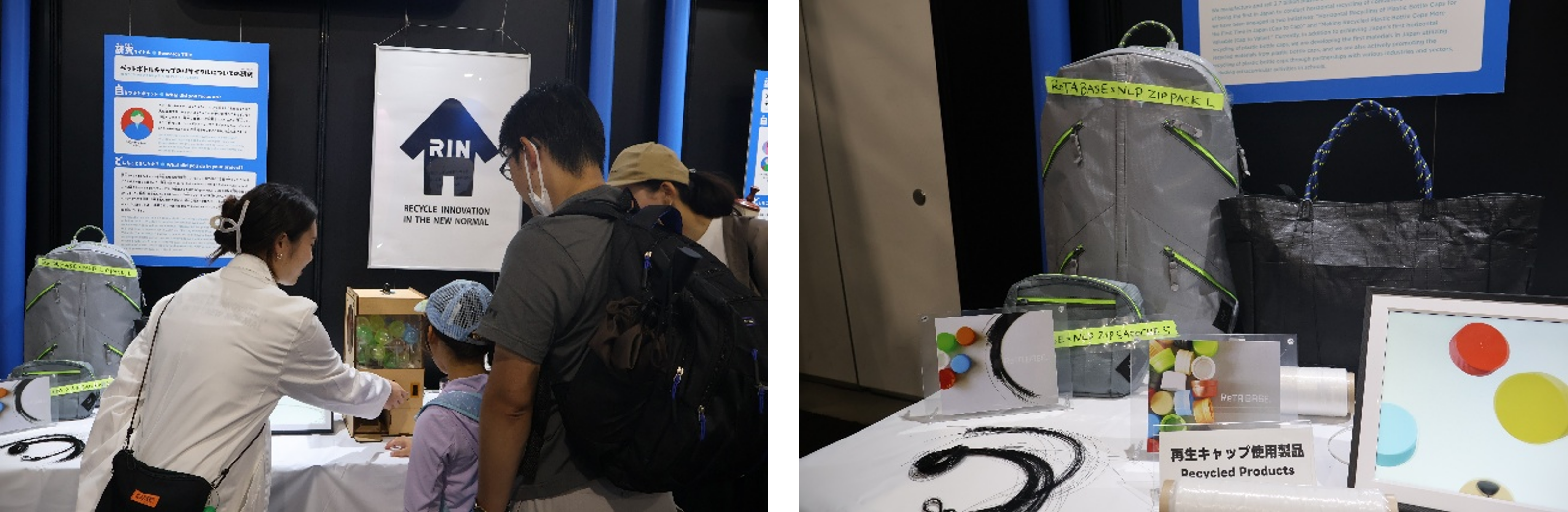当社は、使い終わったペットボトルキャップを、再び新たなキャップや新たな価値へと生まれ変わらせることを中心としたプラスチックリサイクルプロジェクト「RIN~Recycle Innovation in the New Normal~」の活動について展示を行い、イベント全体で約58,000名の方にご来場いただきました。