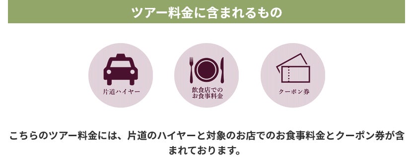 こちらのツアー料金には、片道のハイヤーと対象のお店でのお食事料金とクーポン券が含まれております。