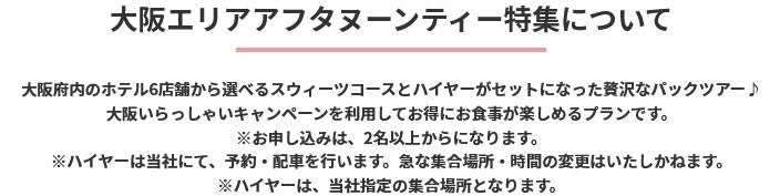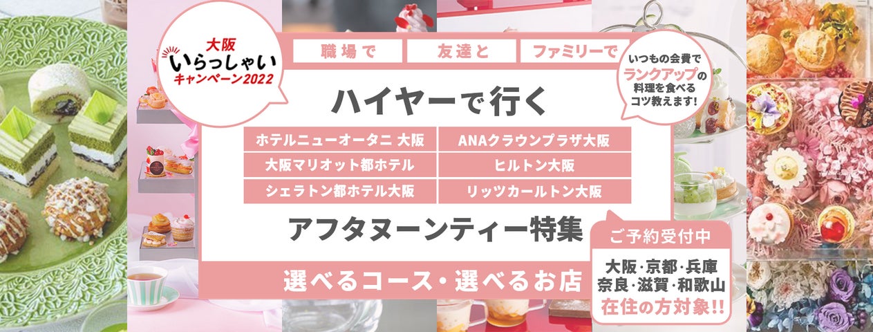 【6月30日迄開催!大阪府・京都府・兵庫県・滋賀県・和歌山・奈良県在住の方限定!】5,000円 さらに2,000円クーポン付 ハイヤーで行く大阪のアフタヌーンティー日帰りパック特集