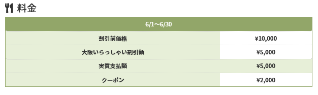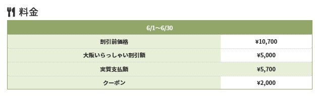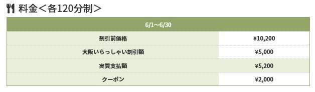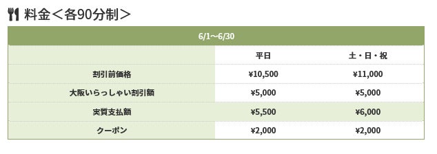 大阪いらっしゃいキャンペーンを利用してお得にお食事が楽しめるプランです。
