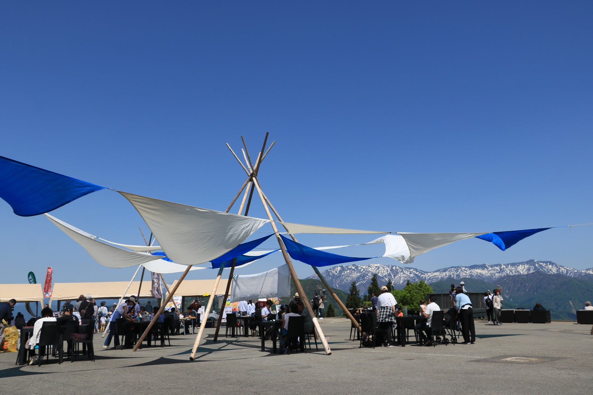眼前に連なる2,000m級の山々の大パノラマと地元グルメとアウトドア体験の「春の雪フェス」