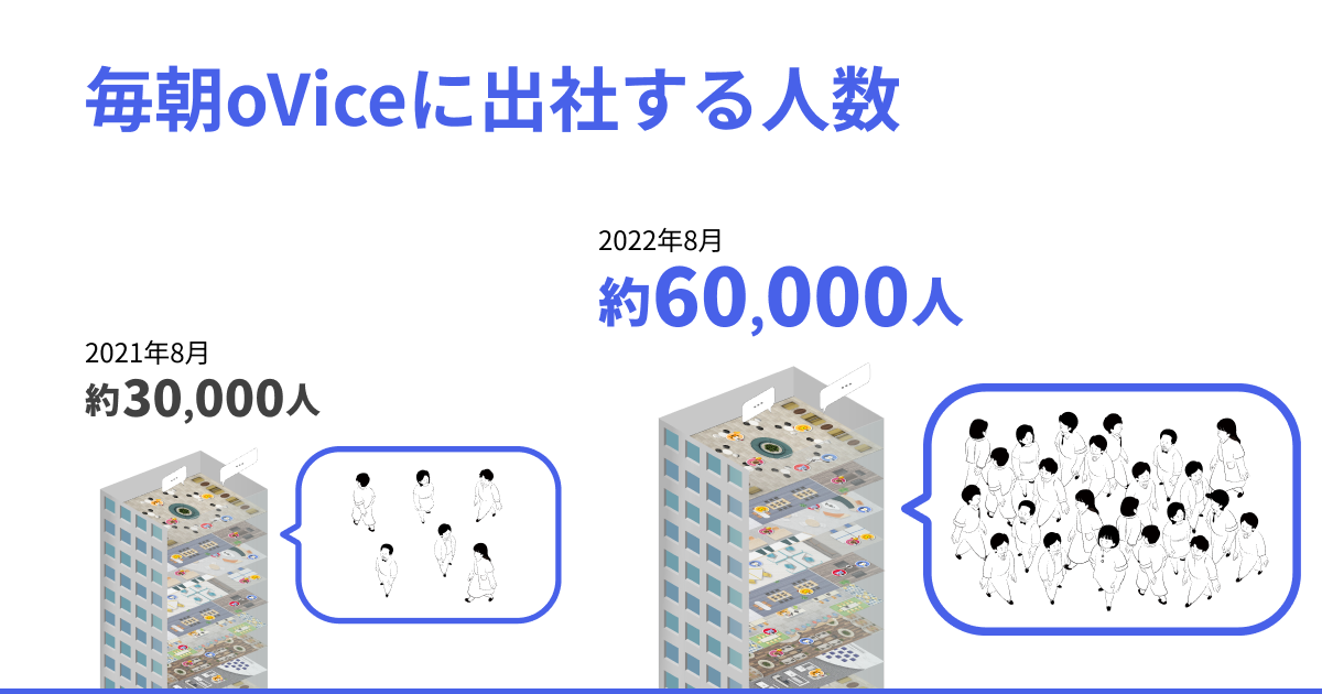 毎朝oViceに出社する人の数は、前年比2倍となる6万人以上となりました。
