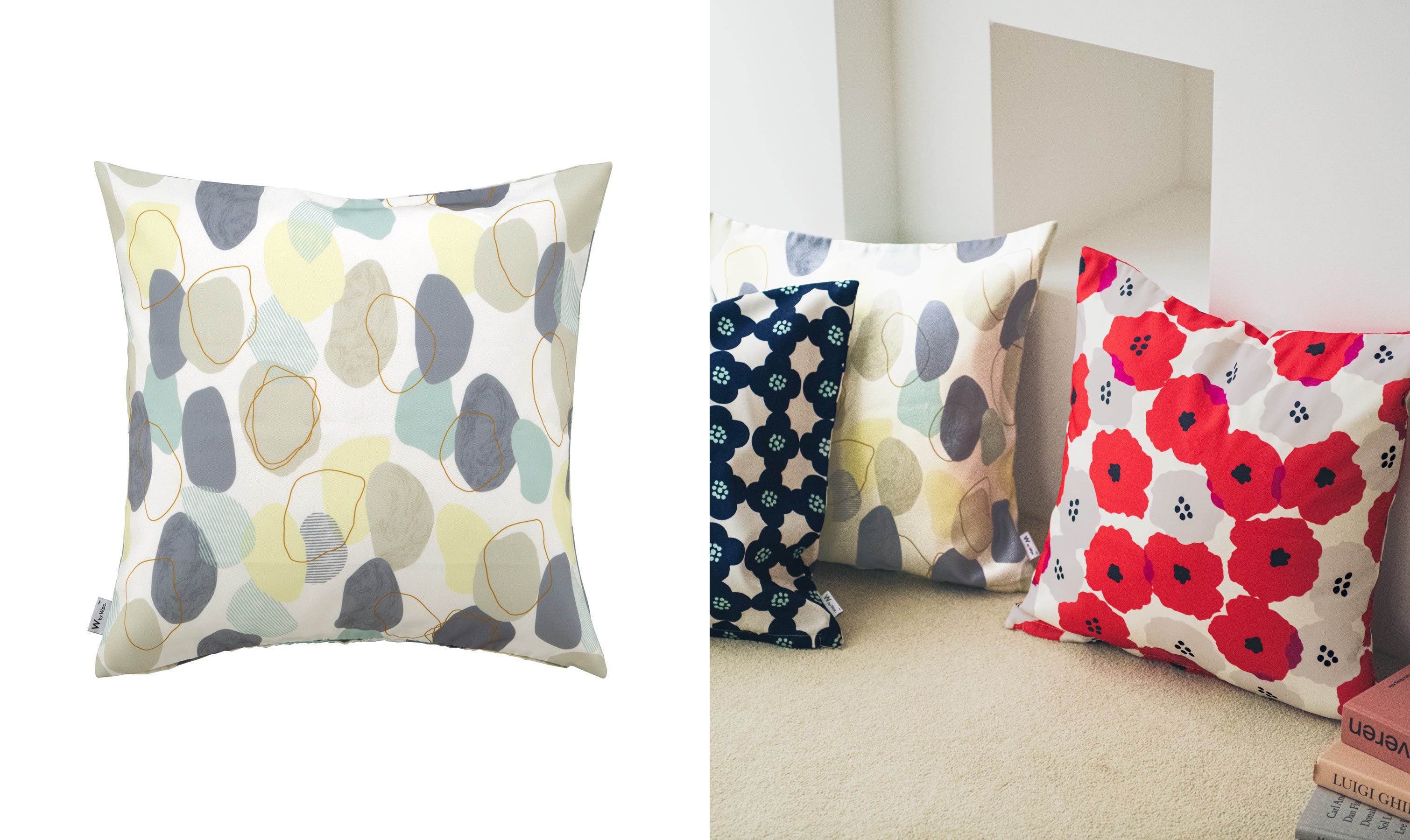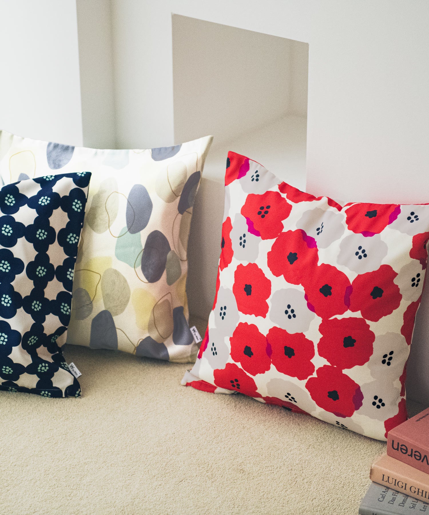 ほっこりするような温かみのあるクッションカバー。4柄の中からお家のテイストに合うデザインを選んでみて。