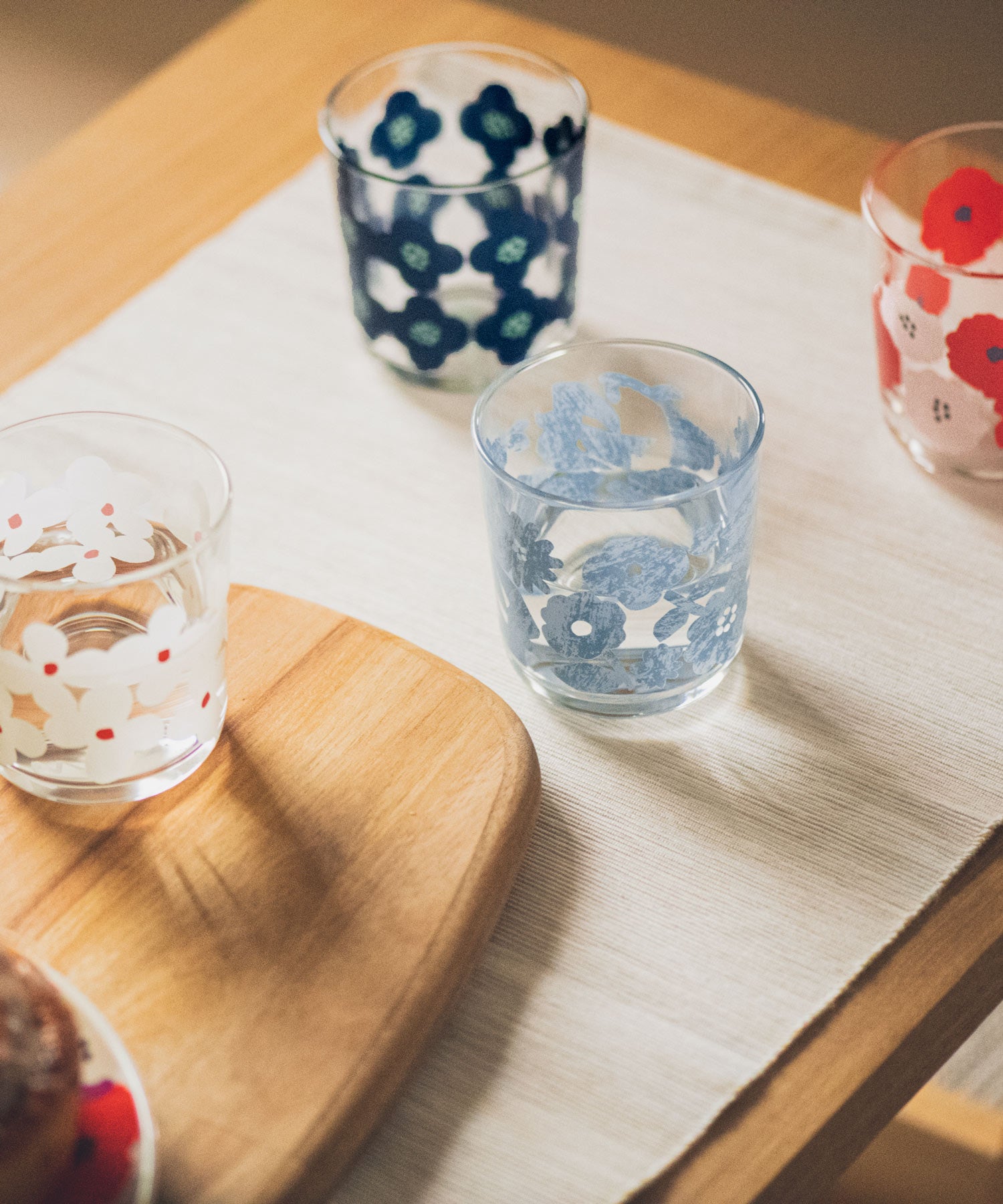 毎日使うものだからこそ、お気に入りのグラスを使いたい。優しい色使いで食卓をパッと華やかにしてくれる、可愛いグラスです。