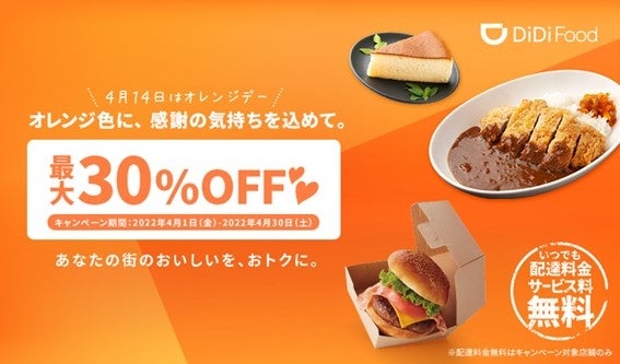 「DiDi Food」が4月14日のオレンジデーを記念し、最大30%OFF等キャンペーンを実施