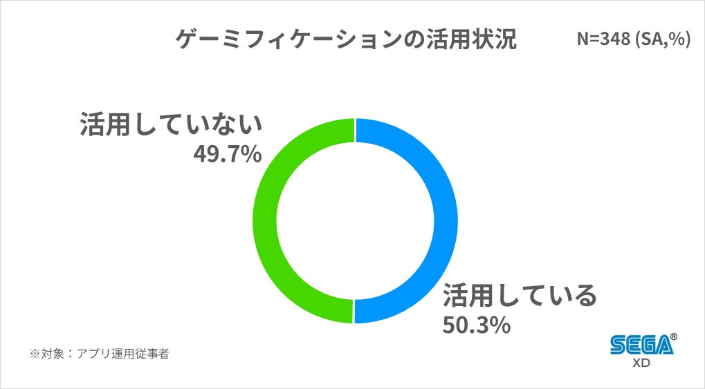 担当している自社のアプリで、ゲーミフィケーションを活用しているかを聞いたところ、約半数(50.3%)が担当しているアプリで「活用している(したことがある)」と回答。