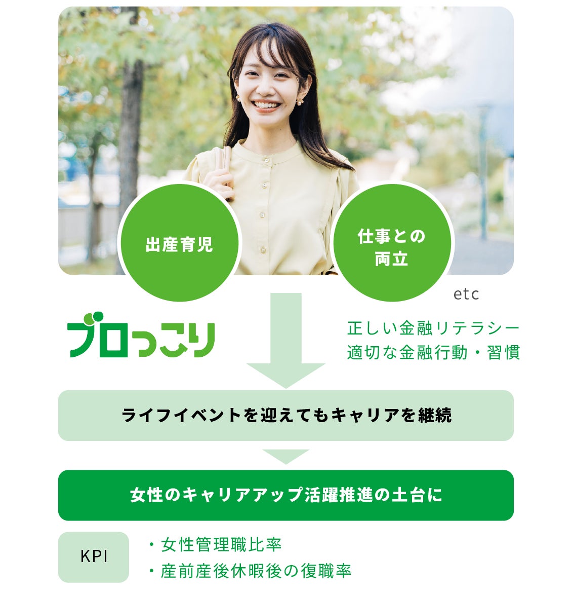 女性が長く活躍できる環境整備をさらに促進するために、ライフイベントの節目のタイミングで対象者の関心の高いマネーとライフとキャリアを総合的に見直し、前向きなキャリア設計に貢献できるものとして提供に至りました。