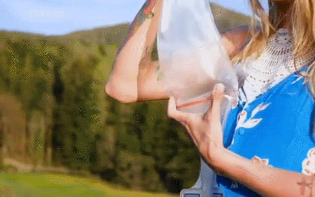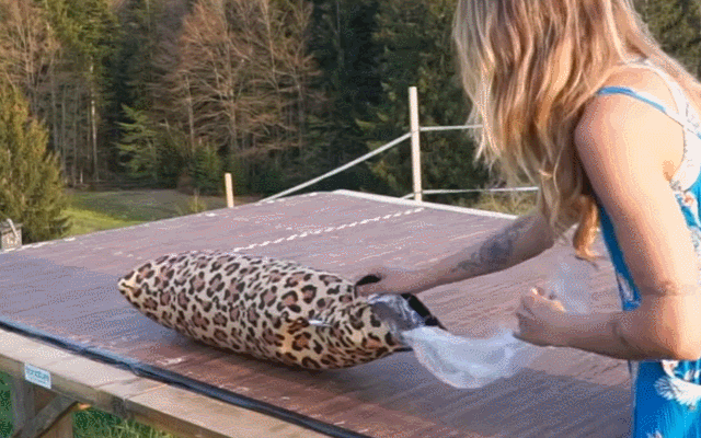エアポンプの袋を手で広げ、空気を入れて、ものの数秒で準備完了。