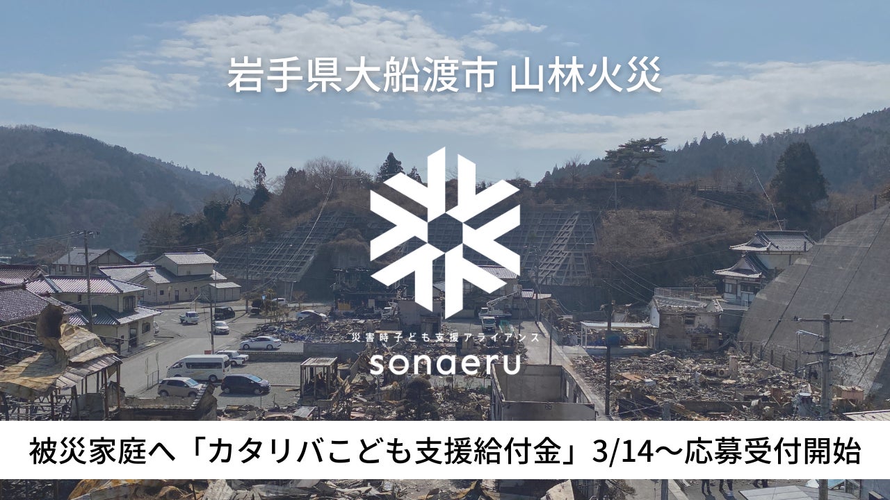 認定特定非営利活動法人カタリバ(本部:東京都中野区、代表理事:今村久美、以下カタリバ)は、岩手県大船渡市の山林火災において、被災した子ども・子育て家庭への緊急支援として「カタリバこども支援給付金」を設置しました。この度、2025年3月14日(金)より応募受付を開始します。(応募締切は3月31日(月))