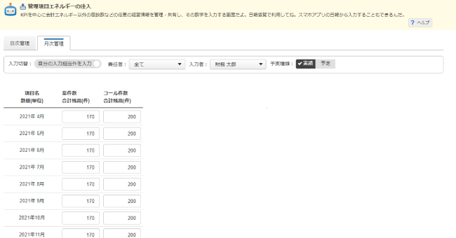 例えば、営業担当者別や店舗別などで粒度を設計し、経営戦略に合わせた予定と実績の管理が可能です。実績はスマホアプリからでも入力することができます。