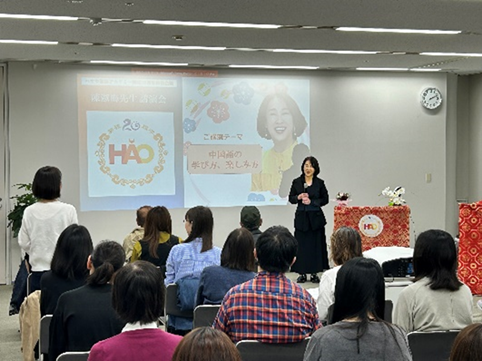 ハオ中国語アカデミーにご通学いただいている生徒様に感謝を込めて、中国語学習において特に重要である「発音のコツ」と「声調を覚えるテクニック」を、中国語発音の指導に定評のある陳淑梅先生から直接学んでいただく講演会としました。中国語の学習はまず漢字の発音記号である「ピンイン」から始まります。多くの学習者にとって、ピンインは難しく、中国語学習の一つの壁とも言えます。陳淑梅先生には、教科書には載っていないピンイン表記に隠れた「ピンインの秘密」や声調や発音の難しさを克服するためのテクニックを惜しみなくご紹介いただき、非常に貴重な時間となりました。