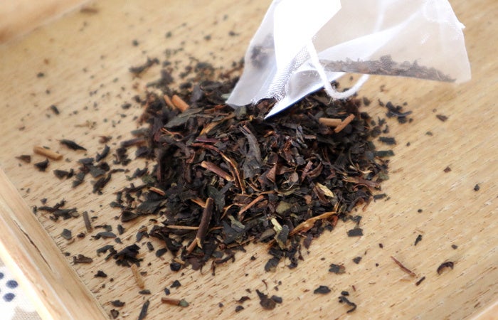 蒸らし終わったら、ティーバッグを少しだけ揺らしてから取り出します。