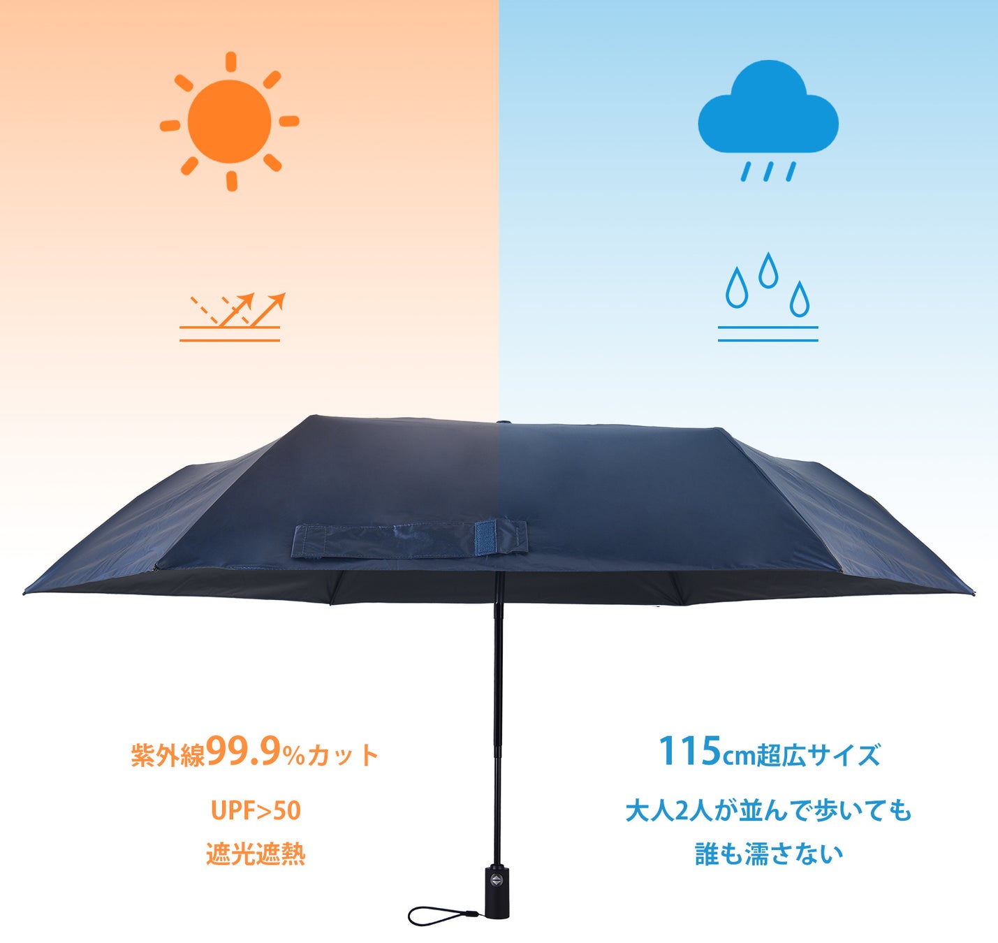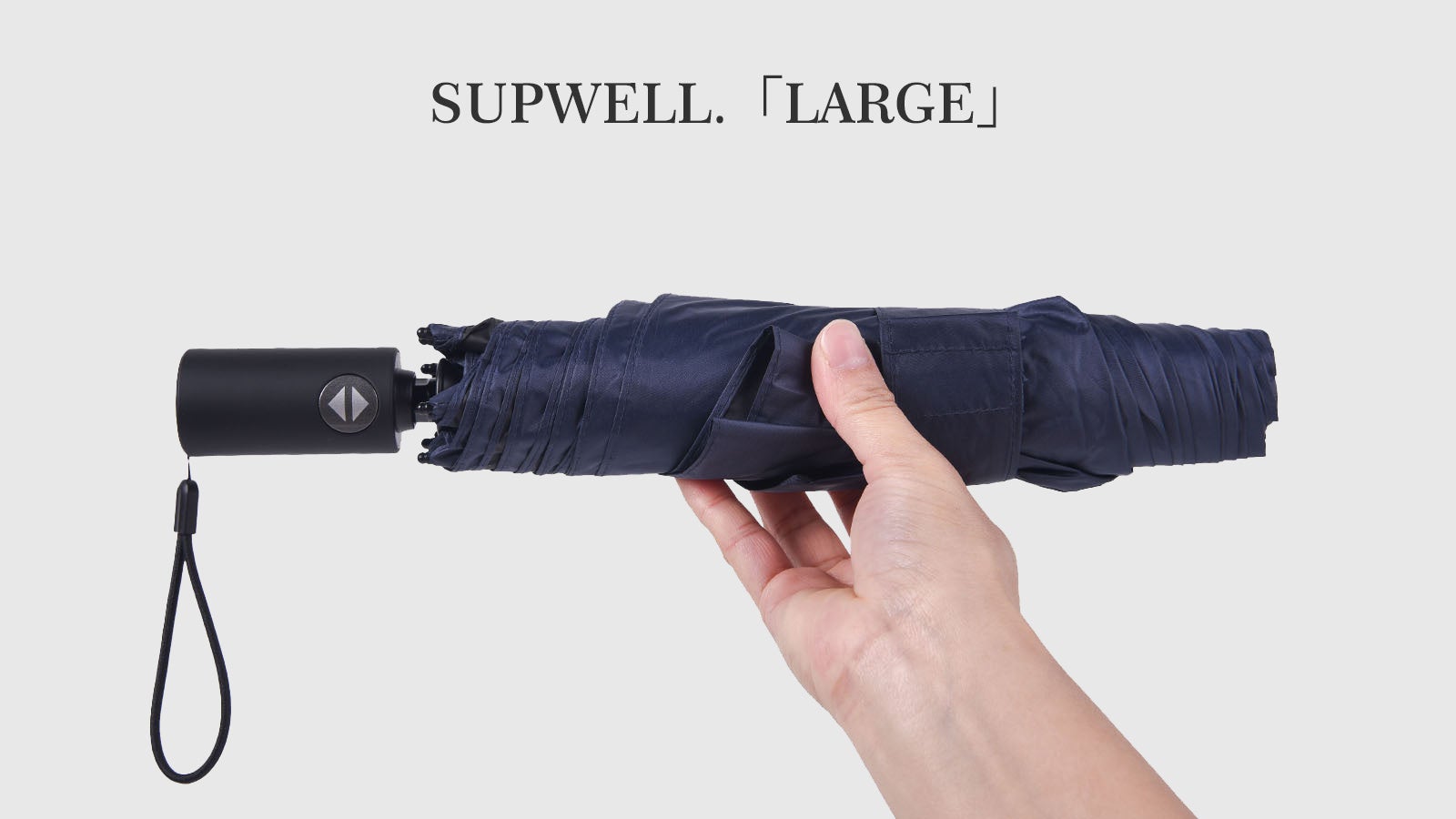 SUPWELLの自動開閉傘「LARGE」は、直径115cmの超ワイドサイズで、雨の日でもしっかりとカバー。