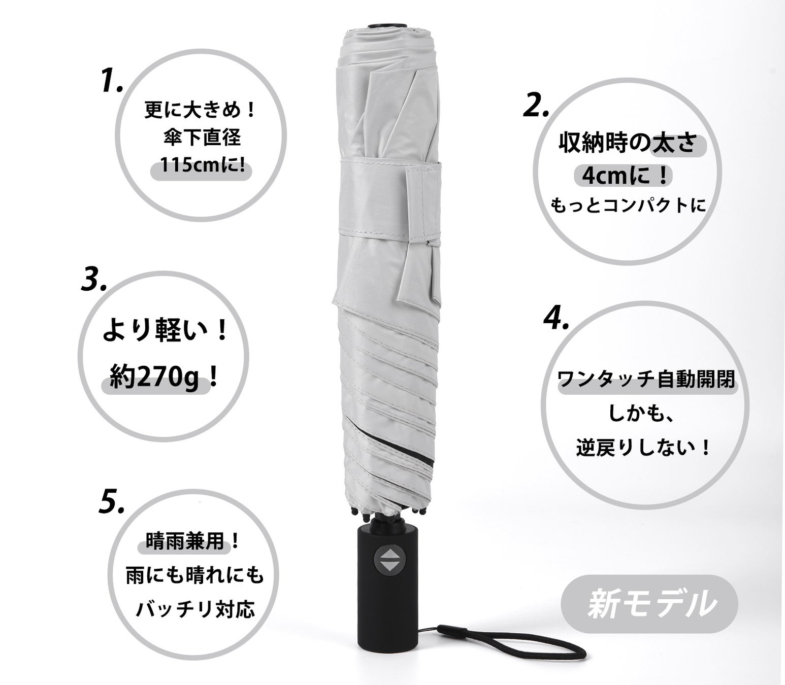 さらに、ワンタッチ自動開閉傘では珍しい厚さ40mmの極薄設計で、持ち運びもラクラク。カバンやリュックにもすっきり収納でき、外出のお供に最適です!