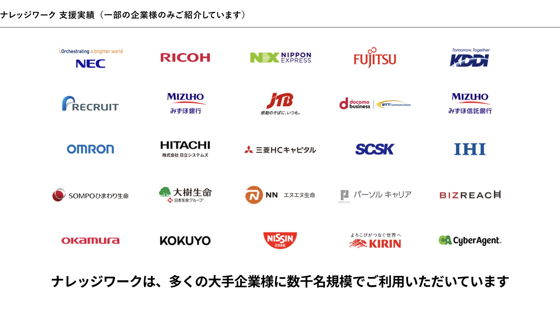 「ナレッジワーク」は、大手企業および成長企業様に導入され、営業現場を支援しています。