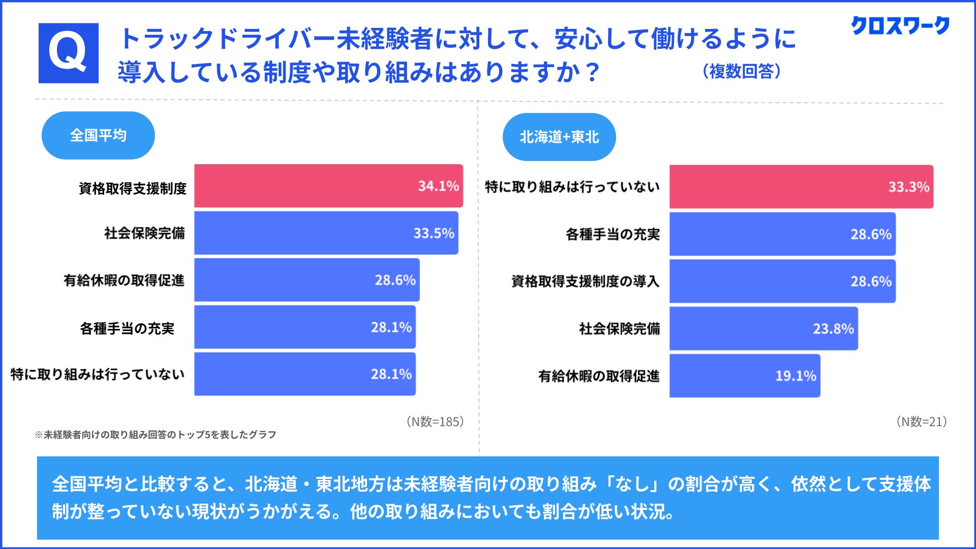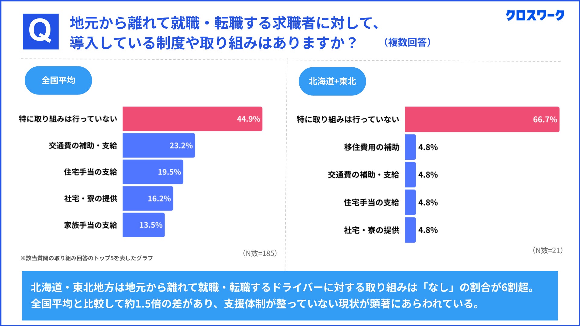 ・地元から離れて就職/転職するドライバーに対する支援、北海道・東北地方の66.7%が「特に取り組みは行っていない」