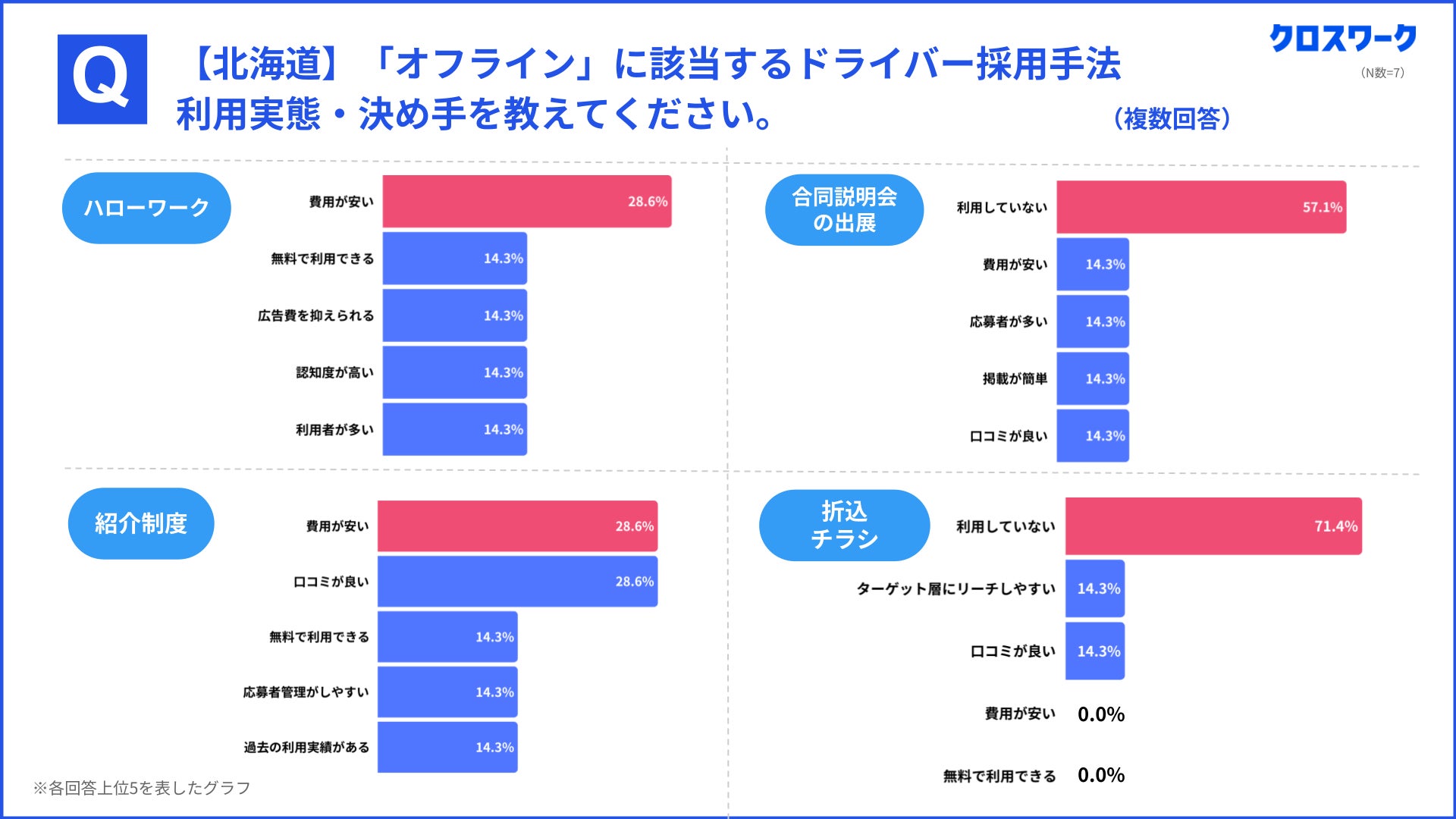 3)北海道・東北の物流事業者、ドライバー採用で「ハローワーク」や「折込チラシ」などオフラインに依存、オンライン利用せずが最多