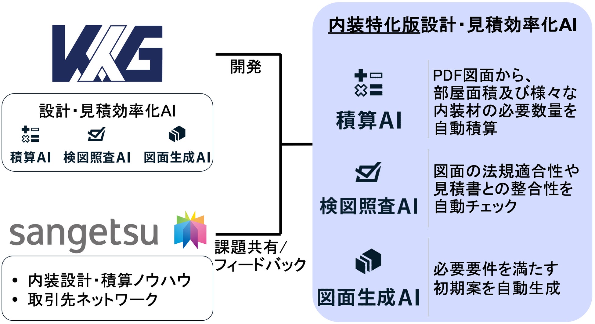 建設図面×AIに特化したプロフェッショナルファームのKK Generation(KKG)が「積算AI」「検図照査AI」「図面生成AI」を内装工事に特化させ、建築業界が抱える業務の負担軽減に取り組みます。