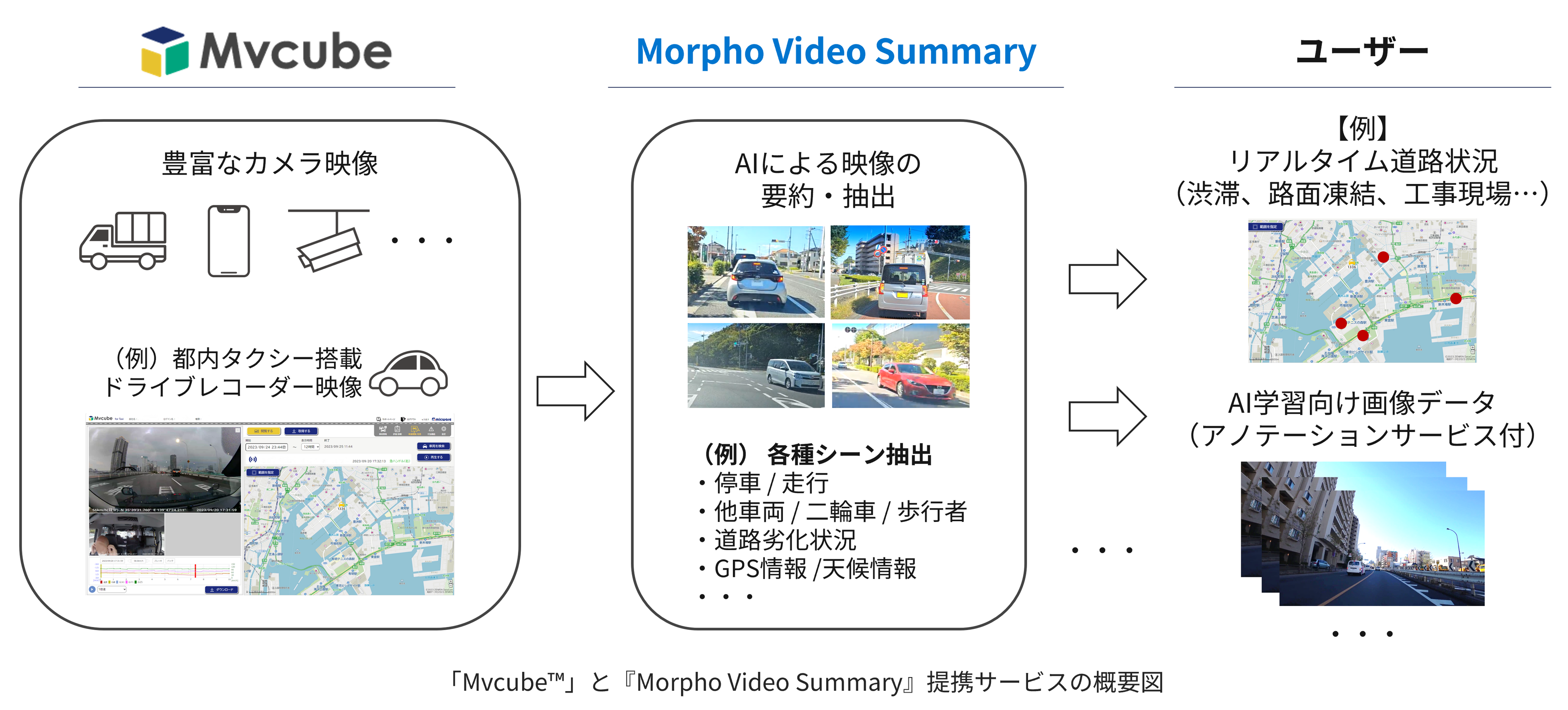今回の連携により、「Mvcube™」が収集する潤沢な映像データの中から、利用用途に合わせて必要なシーンのみを選択的にAIで自動抽出する仕組みを提供可能となりました。