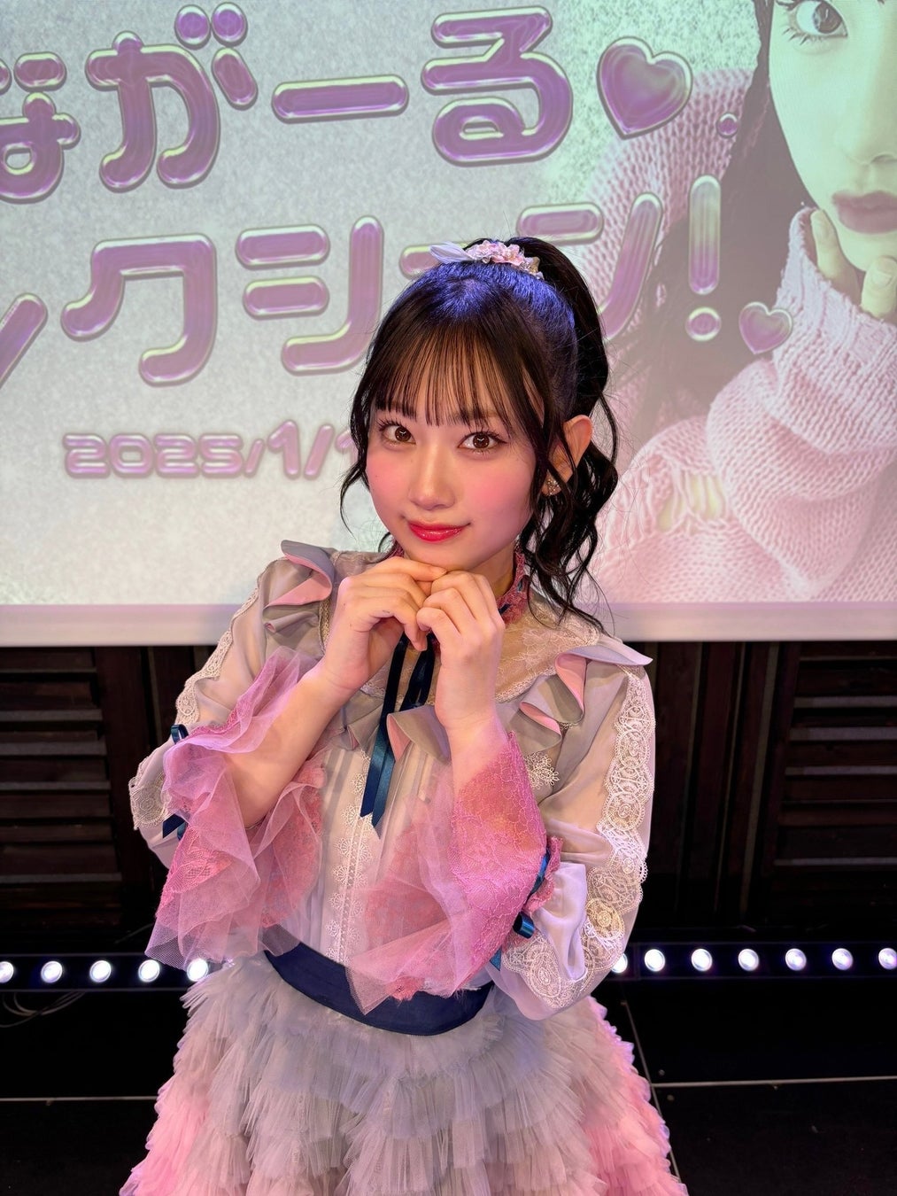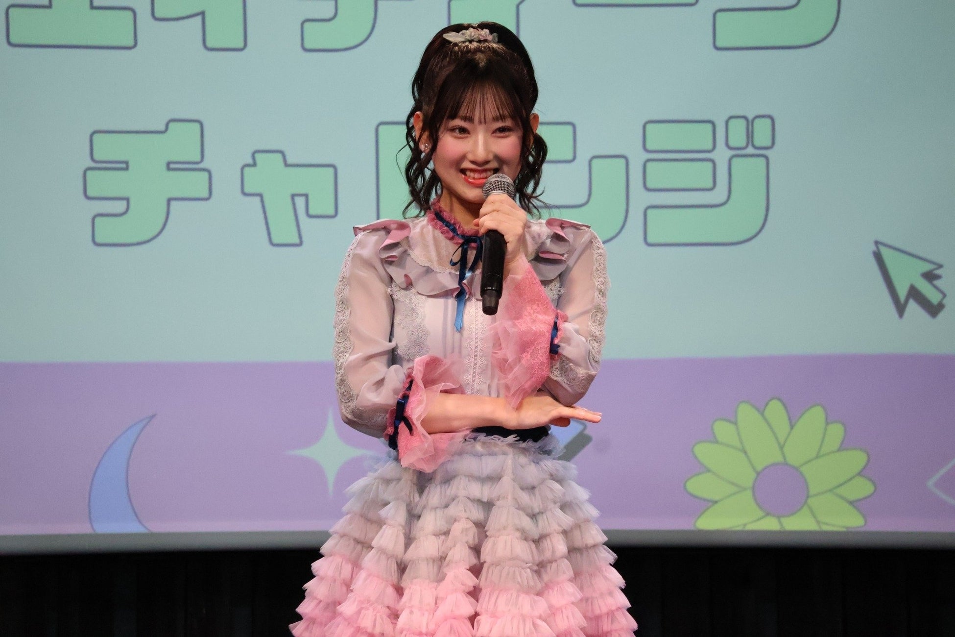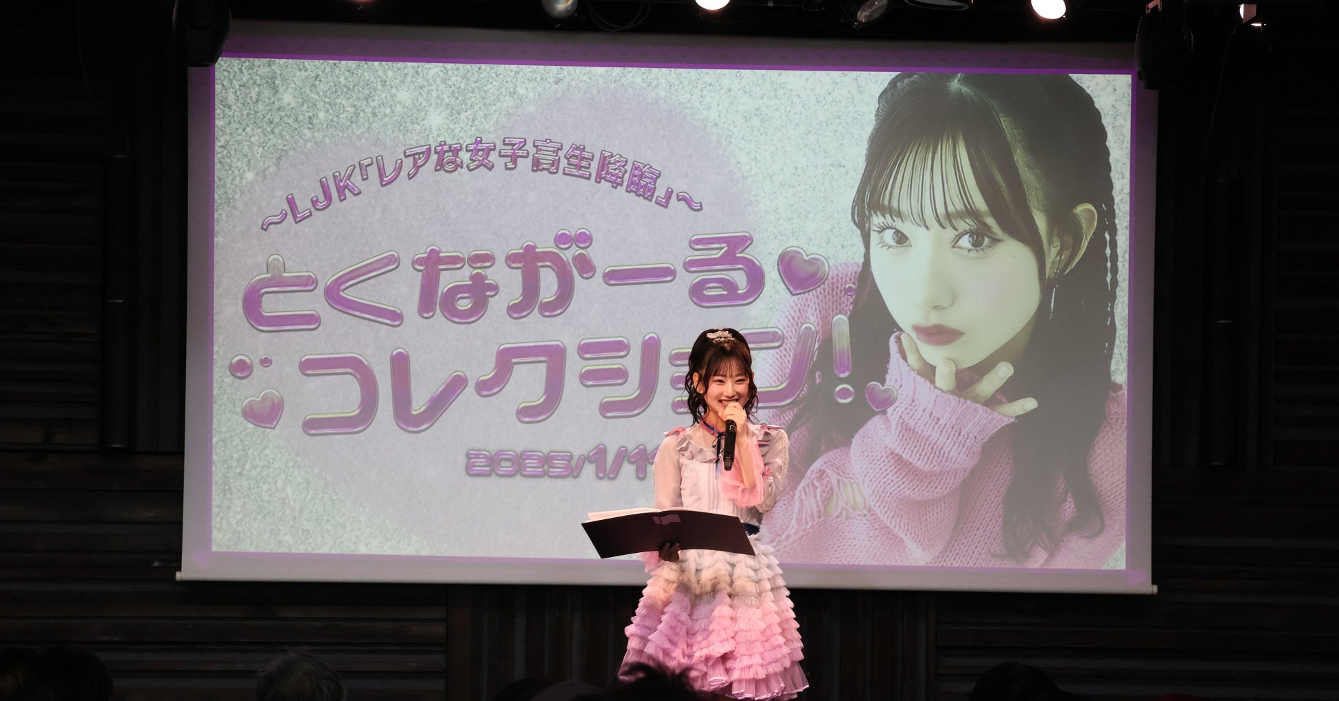 徳永羚海さん初のファンクラブイベント『とくながーるコレクション!~LJK「レアな女子高生降臨」~』が開催され、会場には多くのファンが集まりました。新年の幕開けにふさわしい、明るく華やいだ雰囲気の中、小さなフリルが繊細にあしらわれたワンピースをまとってステージに登場した徳永さんは、新年の挨拶と今年の意気込みを語り、イベントがスタートしました。
