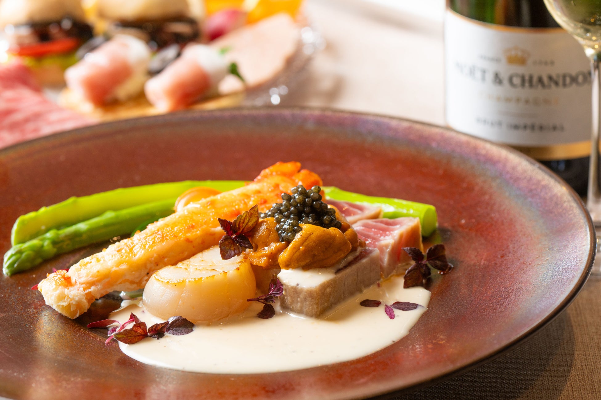 鮪大トロ・タラバ蟹・帆立の饗宴 ~雲丹添えキャビア飾り~