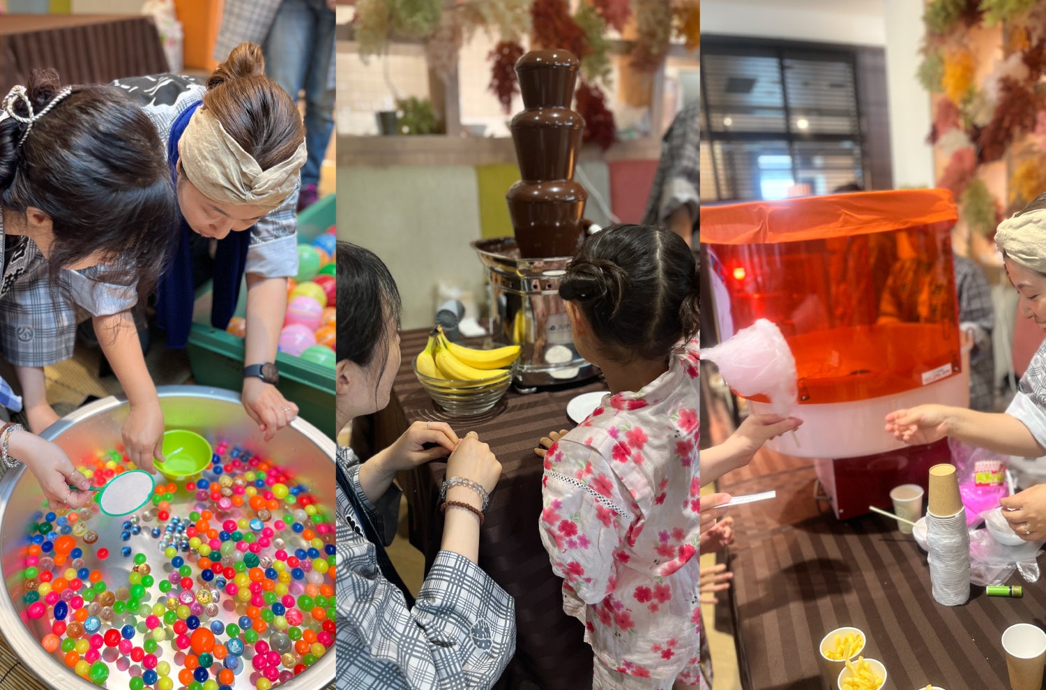 内容:縁日(射的、ヨーヨー、コアラのマーチ焼き、チョコファウンテン、枝豆など各種ご用意)