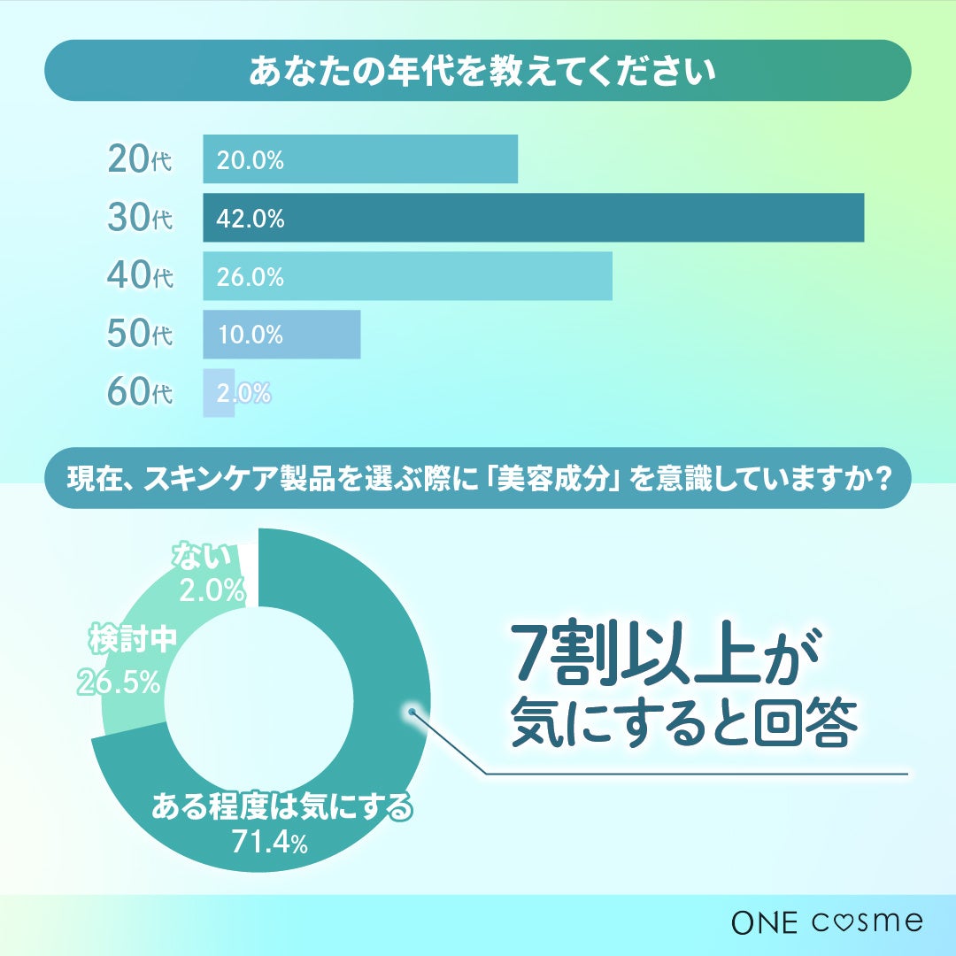 【あなたの年代を教えてください。/スキンケア製品を選ぶ際に「美容成分」を意識していますか?】