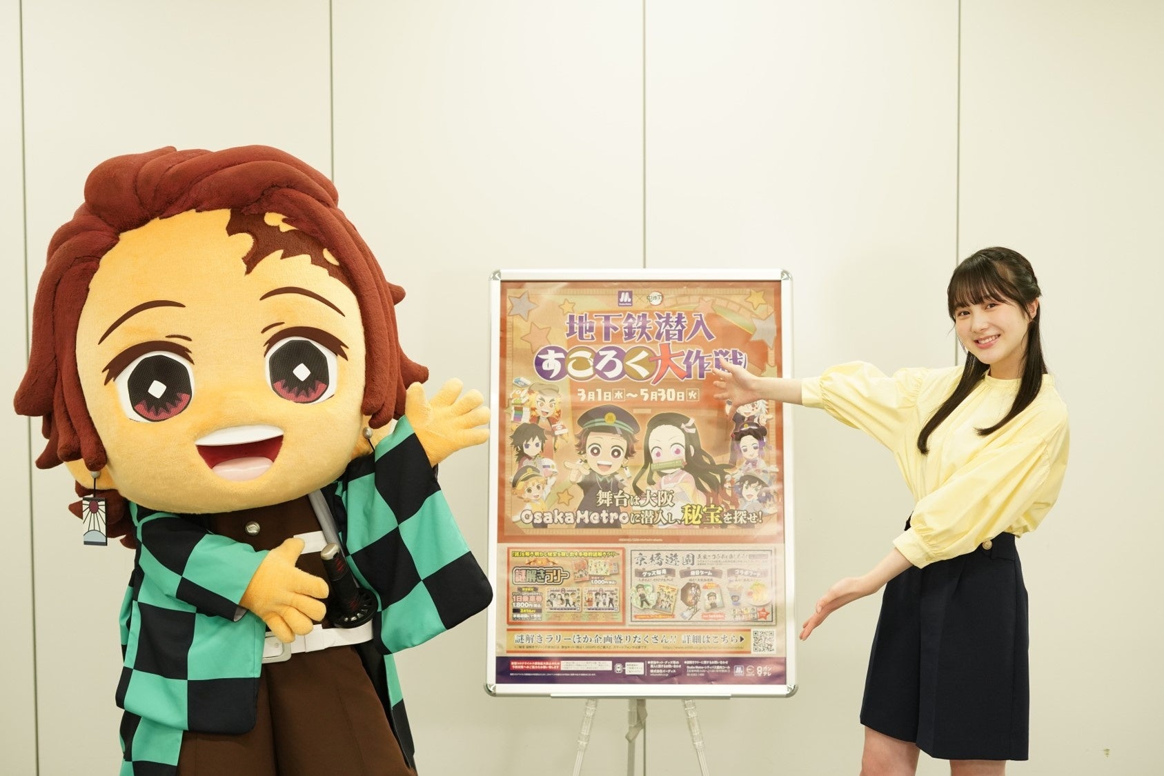 Osaka Metro × アニメ「鬼滅の刃」による謎解きラリー『地下鉄潜入 すごろく大作戦』が開催中! カンテレリポーターの本田紗来さんも禰󠄀豆子の缶バッジゲットに歓喜