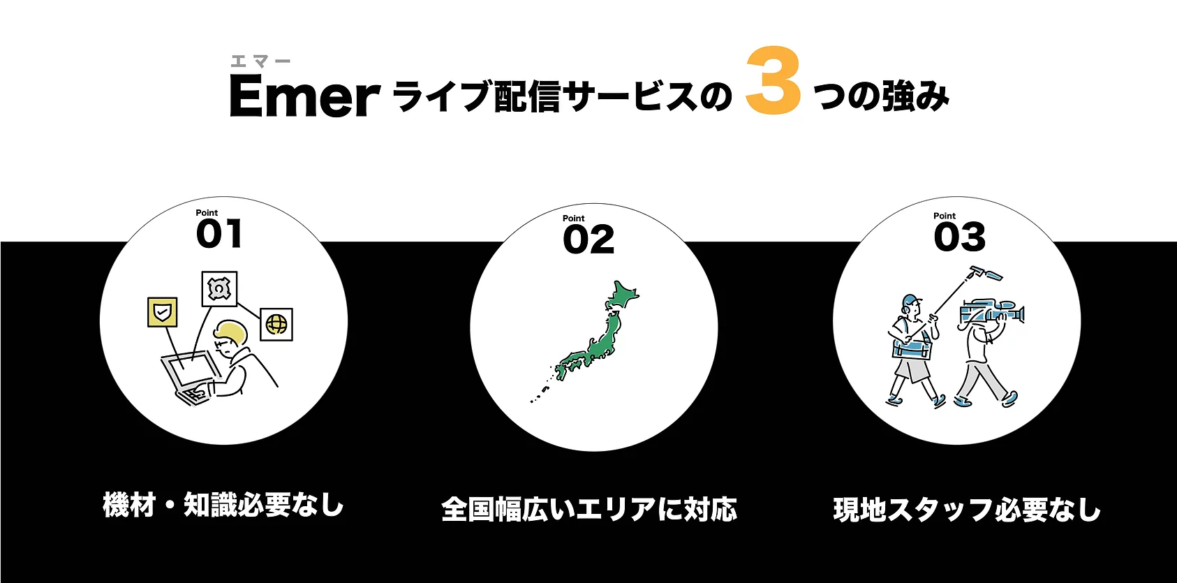 今後Emerは、人材や機材が不足しがちな地方の中小企業のライブ配信サポート事業を行います。
