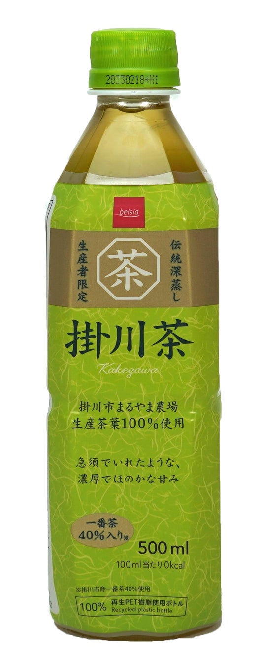 株式会社ベイシア(本社:群馬県前橋市、代表取締役社長:橋本浩英)は、ベイシアプライベートブランドのペットボトル飲料「掛川茶 500ml」を、6月2日(木)よりベイシア全店にて新発売いたします。本商品は丸山製茶株式会社(本社:静岡県掛川市、代表取締役社長:丸山勝久、以降丸山製茶)とともに開発を行い、深蒸し茶の名産地である静岡県掛川市の茶葉原料を使用した産地・生産者限定の商品です。一番茶をふんだんに使用し、急須でいれたようなお茶の味わいを表現したこだわりの逸品です。本格的な掛川茶の味わいをぜひお楽しみください。