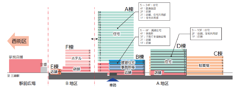 B棟:06階建 / 店舗、子育て支援施設、事務所、賃貸住宅