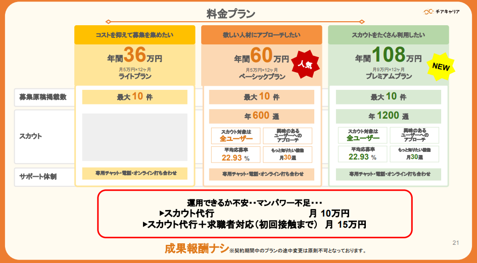 株式会社Cheer(本社:東京都新宿区、代表取締役:平塚ひかる)は、企業の平均採用数を大きく引き上げるダイレクトリクルーティング特化型の新料金プラン「チアキャリア プレミアムプラン」を2023年2月20日付けでリリースいたしました。