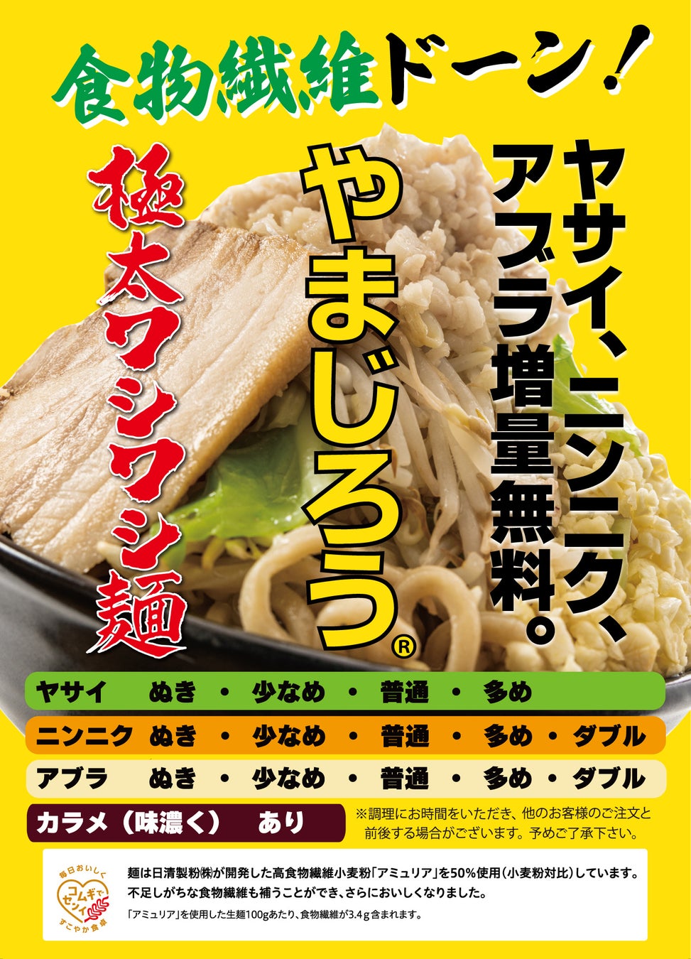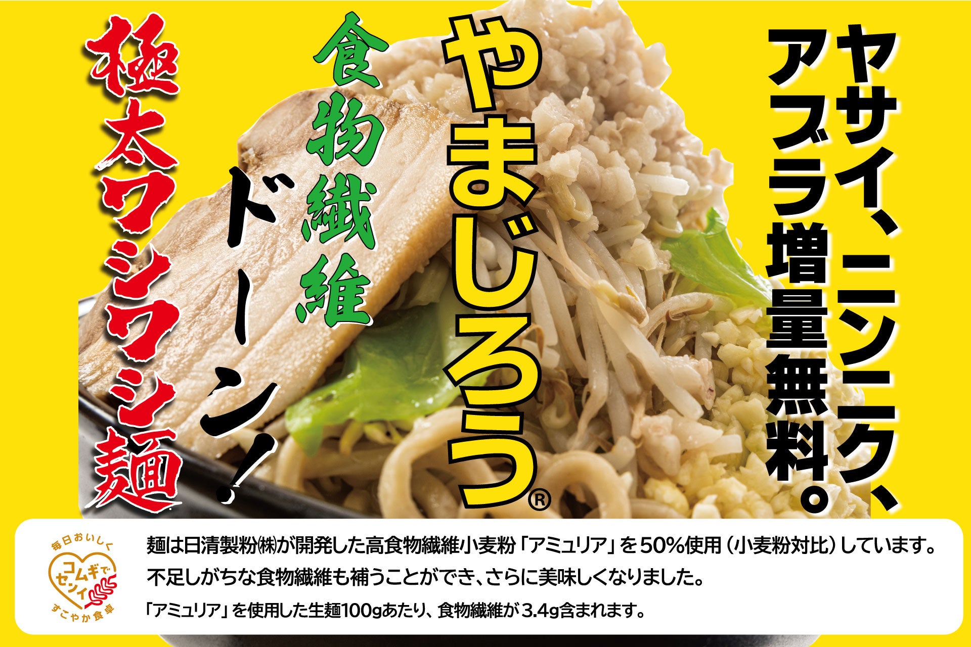 【日清製粉㈱×ワイエスフード㈱】高食物繊維小麦粉「アミュリア」使用の極太麺を共同開発、既存品の約2倍の食物繊維で進化系麺が完成!人気の極太ワシワシ麺 『やまじろう』などお客様の健康意識してリニューアル