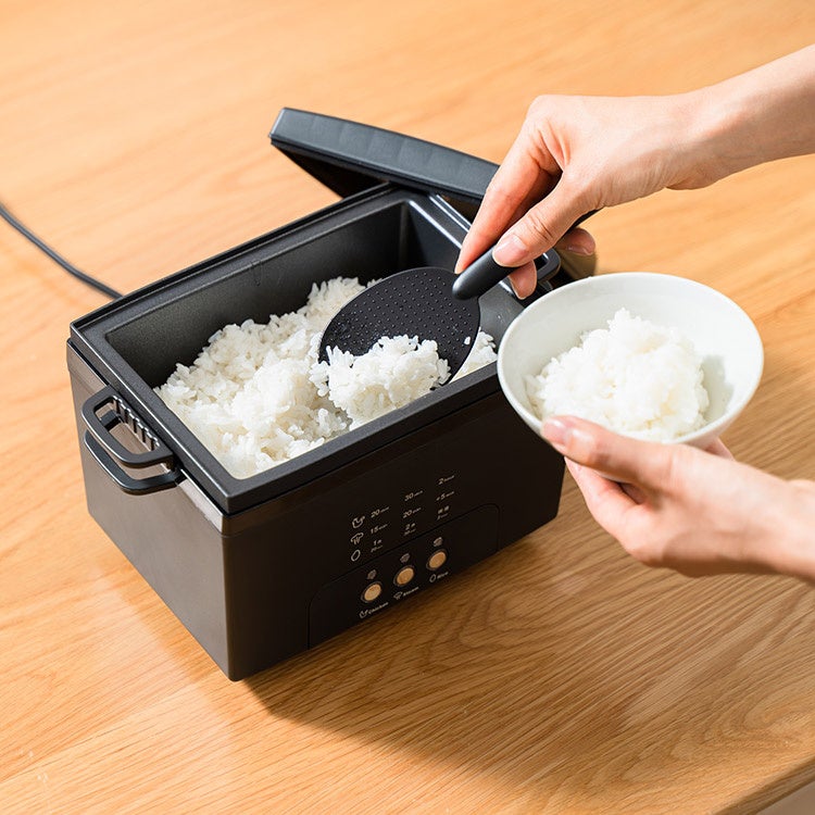また、炊飯機能は一人暮らしで炊飯器をお持ちでない方や、大きな炊飯器はいらないという方でも気軽にお使いいただけるよう20分で1合、30分で2合を炊飯できるようにしました。