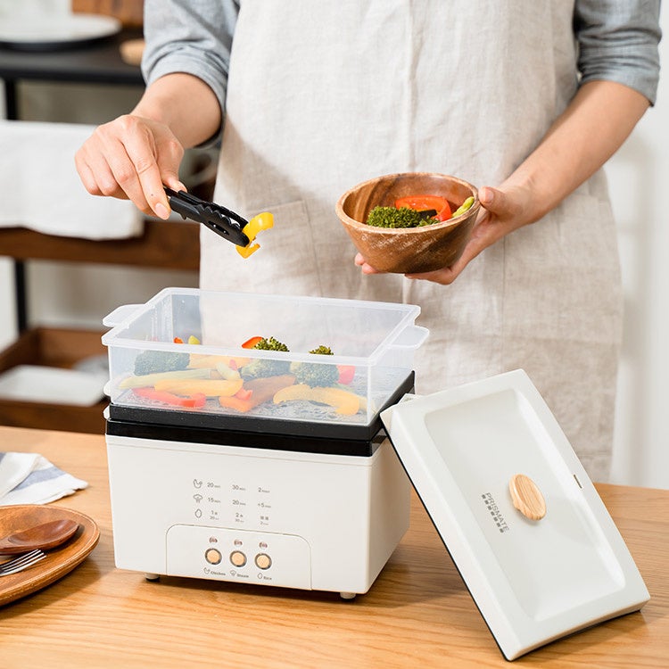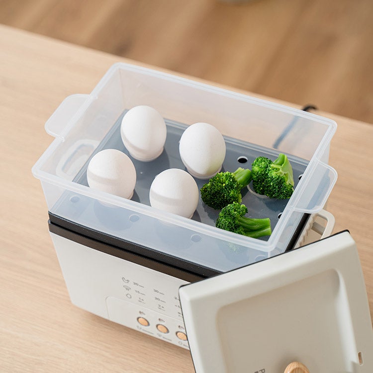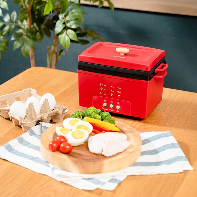 さらにサラダチキンモードに加え、付属のトレイを使用して蒸し野菜・ゆで卵などが同時に調理できるスチーム機能、2合までのお米が炊ける炊飯機能と、3つのモードを搭載したことが大きく異なる点です。